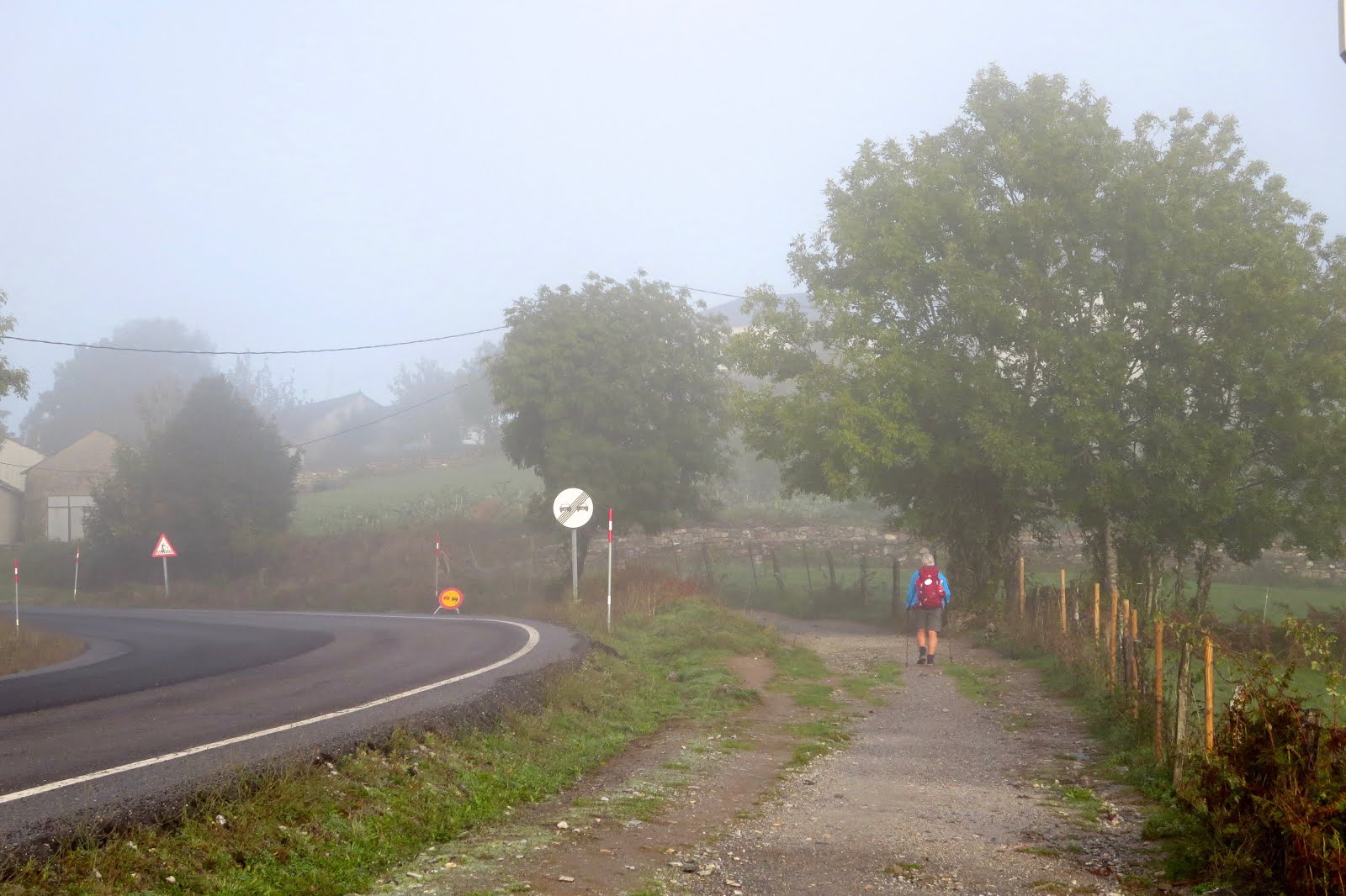 We were well away before sunrise. What we didn't know until we caught up in Samos was that Ken had departed much earlier. But then, he got lost in the dark around San Cristobal do Real where the church is below.