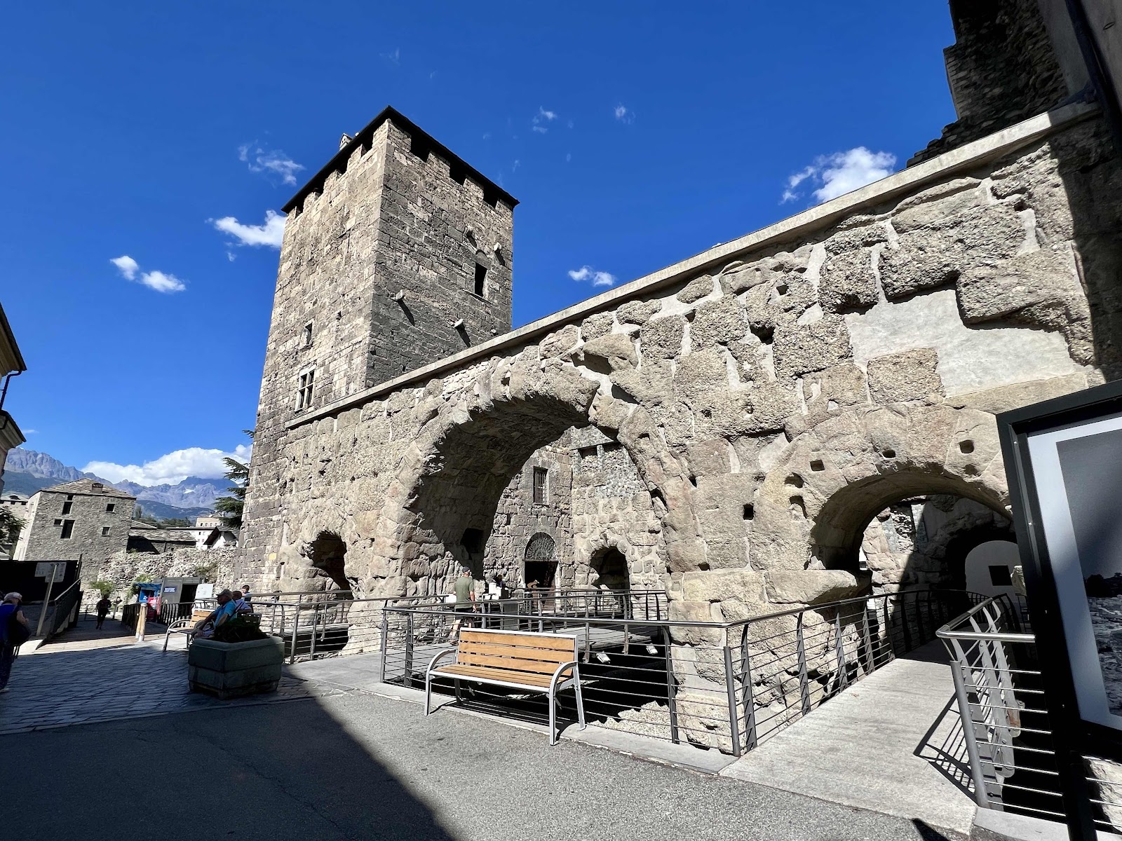 I think I managed to get all my gear sorted out and crawled into bed at about 11:30. I slept until 5:00 and after reading for a couple of hours I was up, breakfasted and on the trail at 8:15. I elevated my pace as I wanted to be in Aosta to have time to enjoy the old Roman city and to just be disconnected for a time. On some parts of the descent this was tough to do because it was so steep, but I was down just before noon. After shopping, checking into the small apartment I rented (I can cook all my meals) and getting the usual domestic issues done I went wandering. Here’s some photos from the descent from Etrouble. There are also lots of photos in the video at the end of the post.